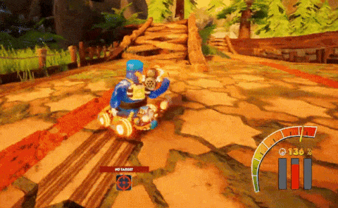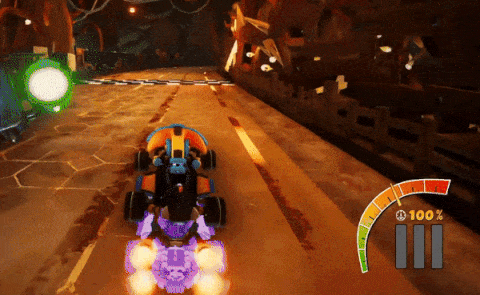 Jump trick and landing boost: If you press the jump button while you are in the air, you will do a trick. You can do this any time you are airborne. If you land on the ground after doing a trick, you will get a landing boost that will make you go much faster for ~1s. It will also increase your engine %, which affects how much reserve (will be explained later) you build up. This means you can go faster as it increases your top speed. If you don’t press the jump button or do a trick, you won’t get a boost.